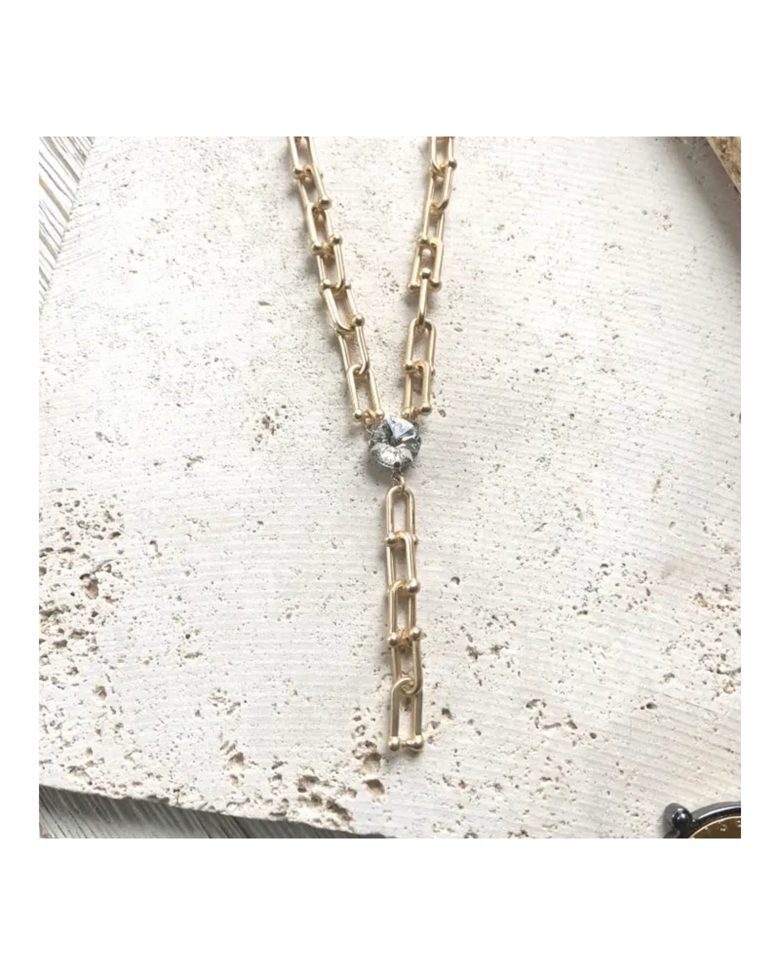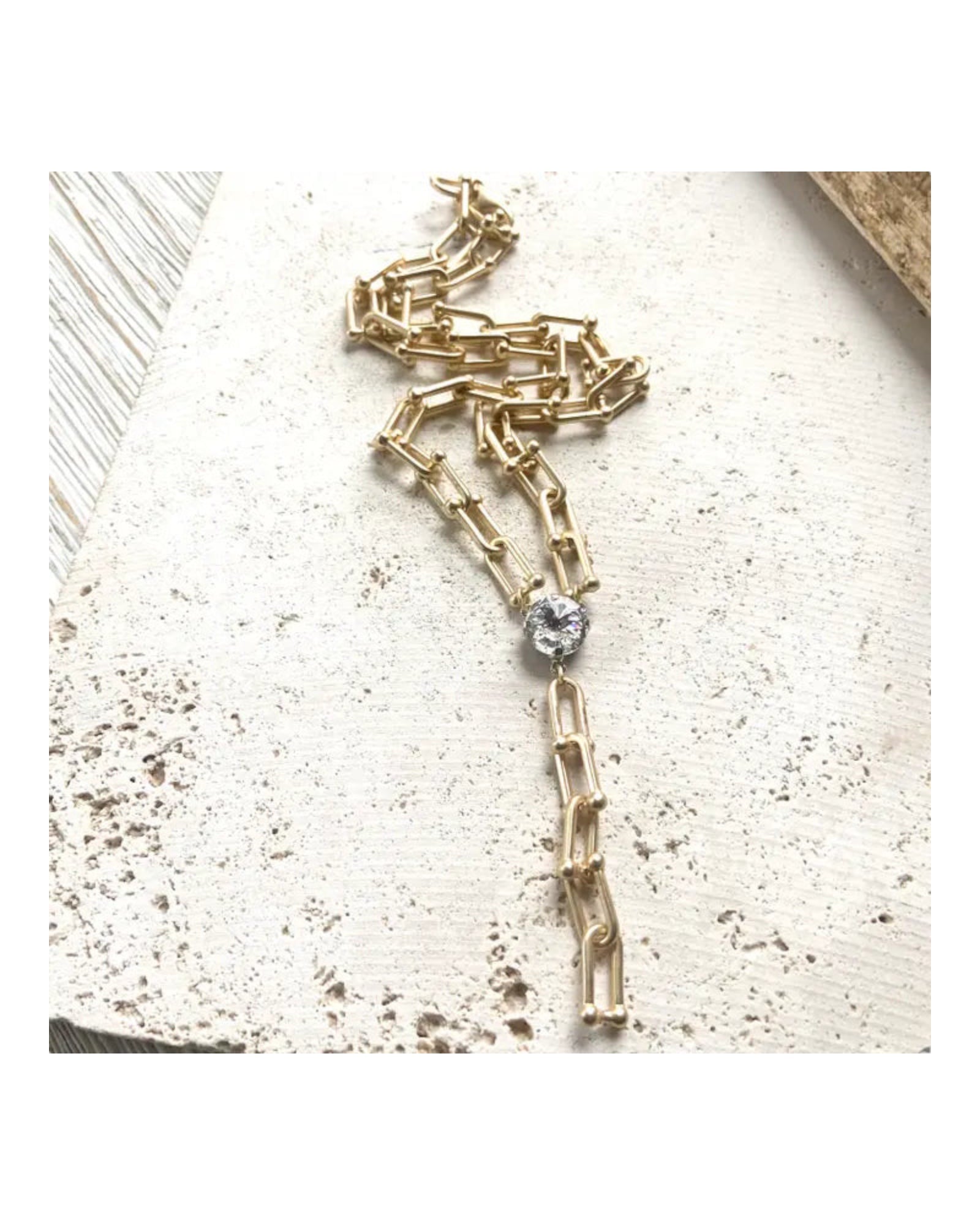 Indulge in luxury with our Matte U Chain Necklace. Crafted with a beautiful Y-shaped matte gold chunky "U" chain, this necklace is the perfect addition to any gal's accessory lineup. Complete with a stunning clear crystal connector, this adjustable necklace radiates elegance and sophistication.