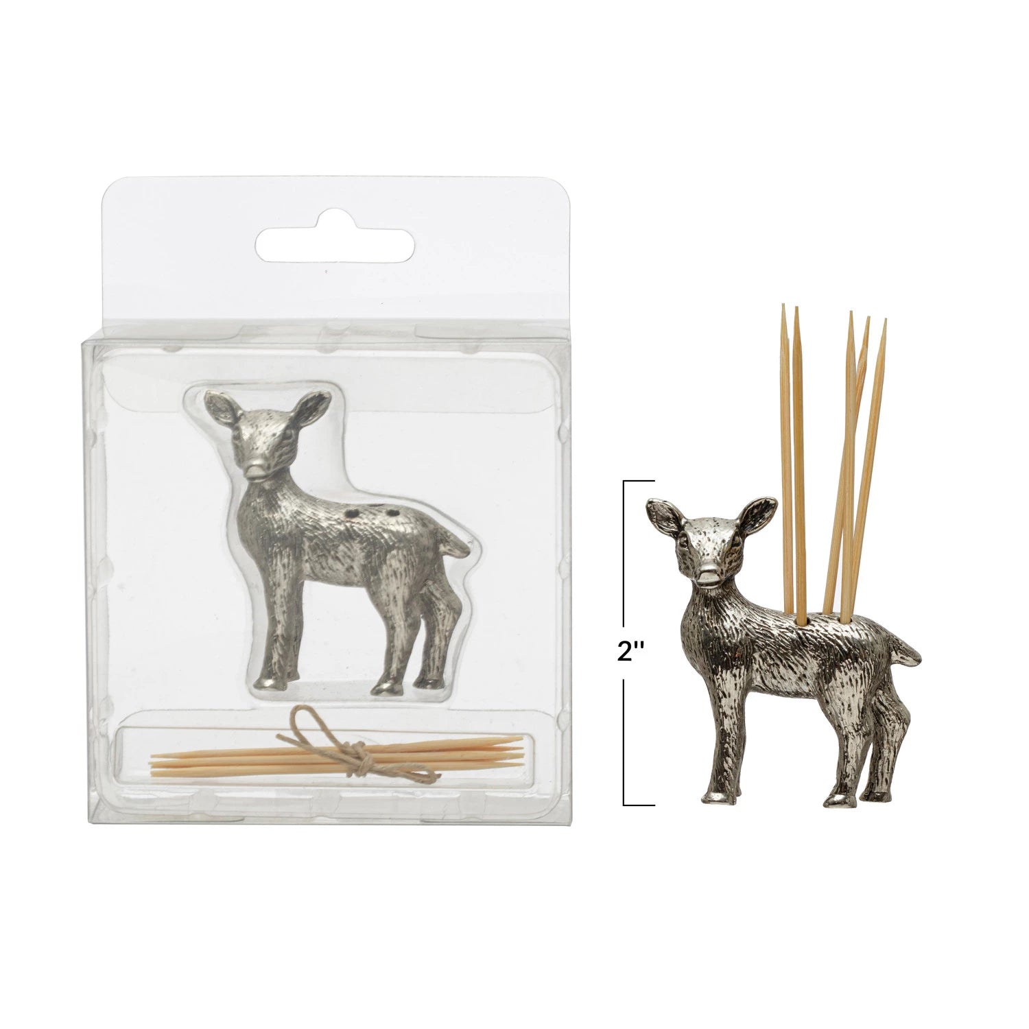 2"H Pewter Deer Toothpick Holder w/ 6 Toothpicks